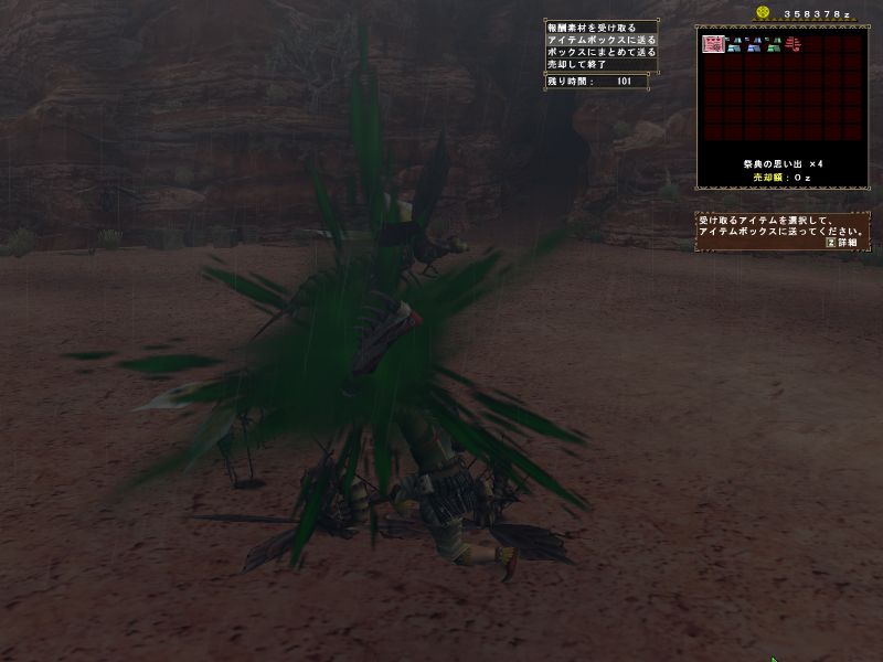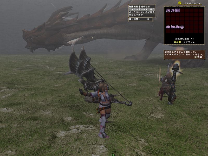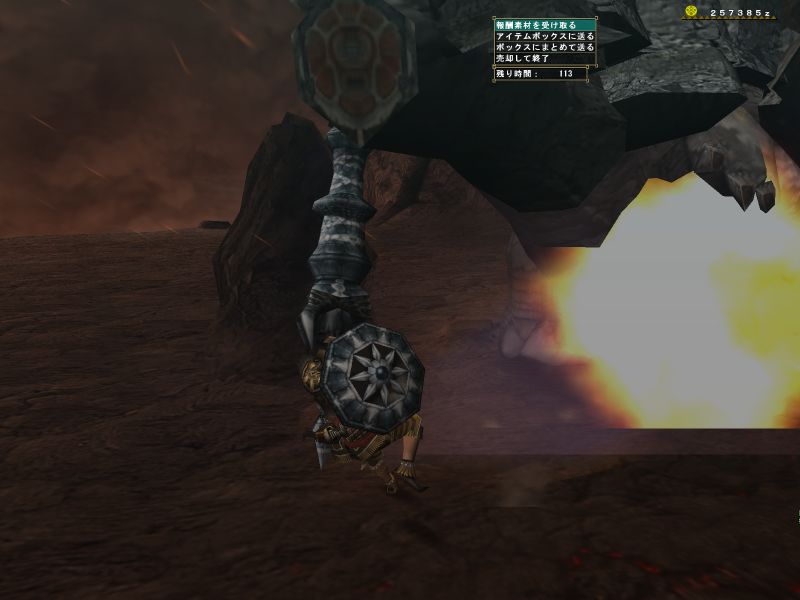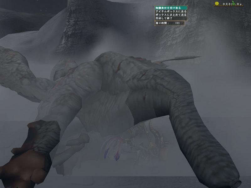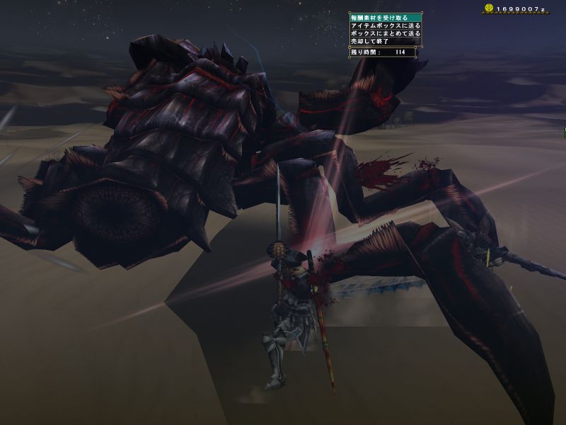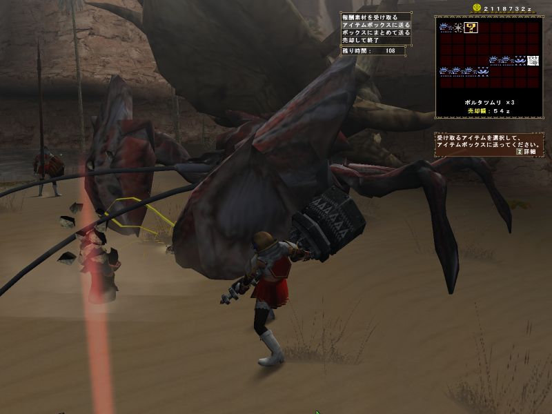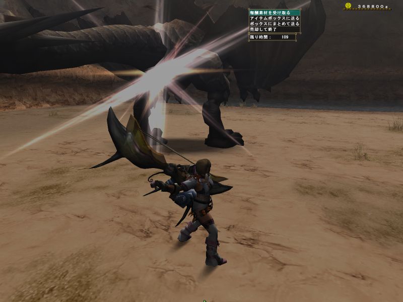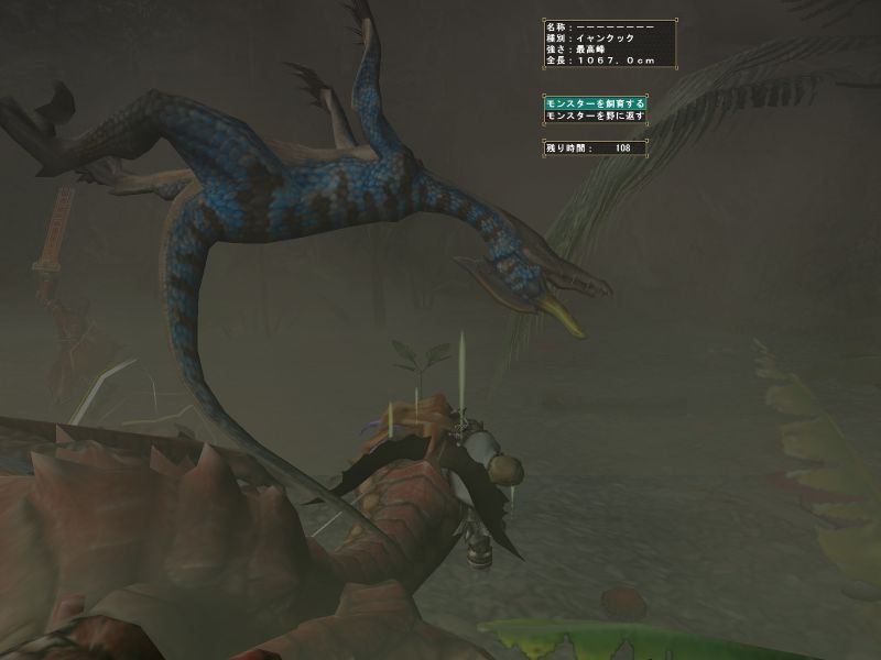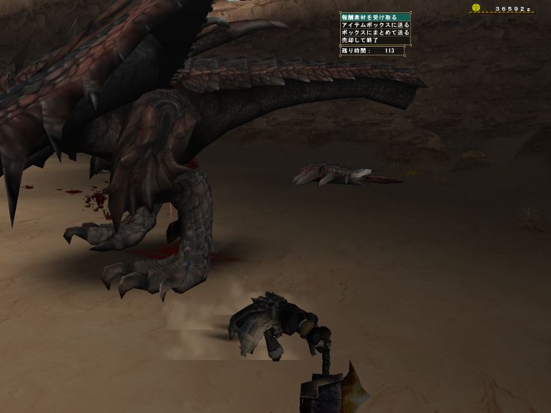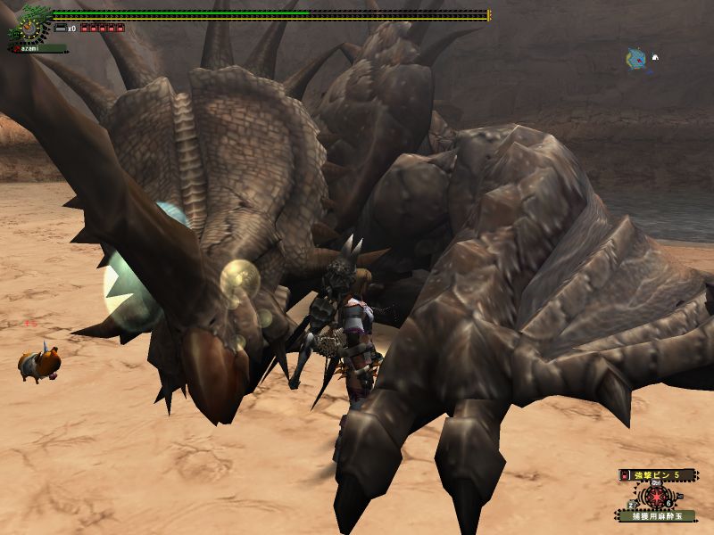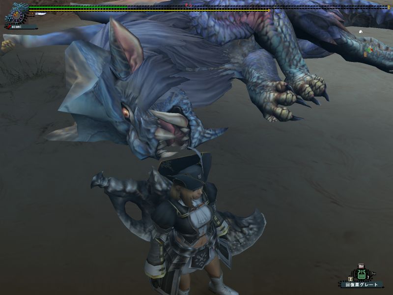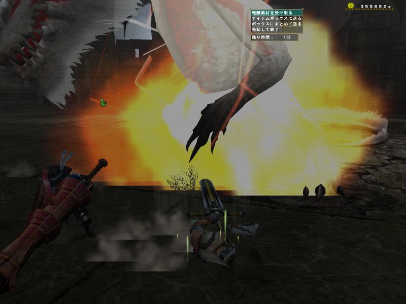 途中で関係ない雑魚モンスに手を出している。メインターゲットと戦っているとたてコンボかましてくる。敵のいない方向に攻撃している。青いけむり玉をまいてどこかに離脱。