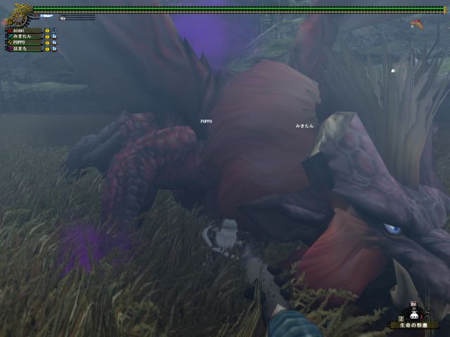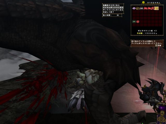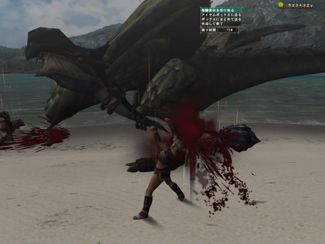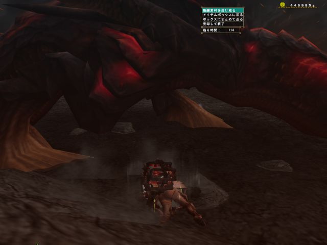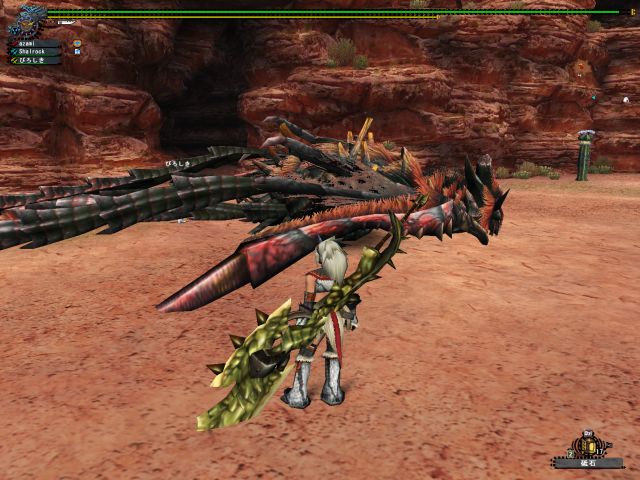 攻撃力がものすごく高いわりに体力のほうはそれほどでもないので、部位破壊がやっかいです。(しかもみんなの待ってた「古龍種の血」は頭破壊でしか入手できないようです)