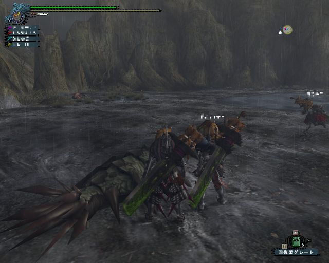 みんなで大剣でボコッて、尻尾切ったり。