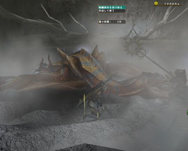 結局間違えて罠にかけたほうは、まだ体力が残っていたので捕獲できず、隣のエリアに逃げてシビレを調合、カオスななか再度捕獲に。