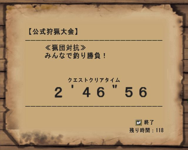 黒2捕獲で、白討伐。アイルー1匹がマストオーダーだそうだ。