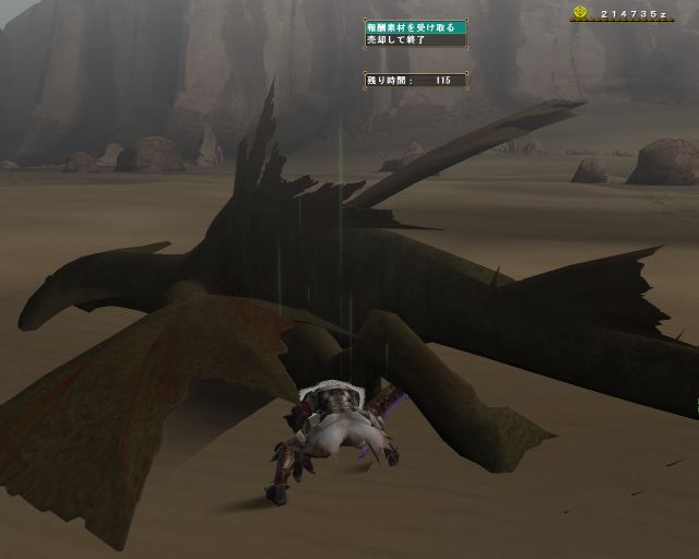 無色体液が欲しい場合は部位破壊をしないように討伐だ。部位破壊と体液の色の変化がおきてからが面白いモンスターなのにね。作業っぽい。