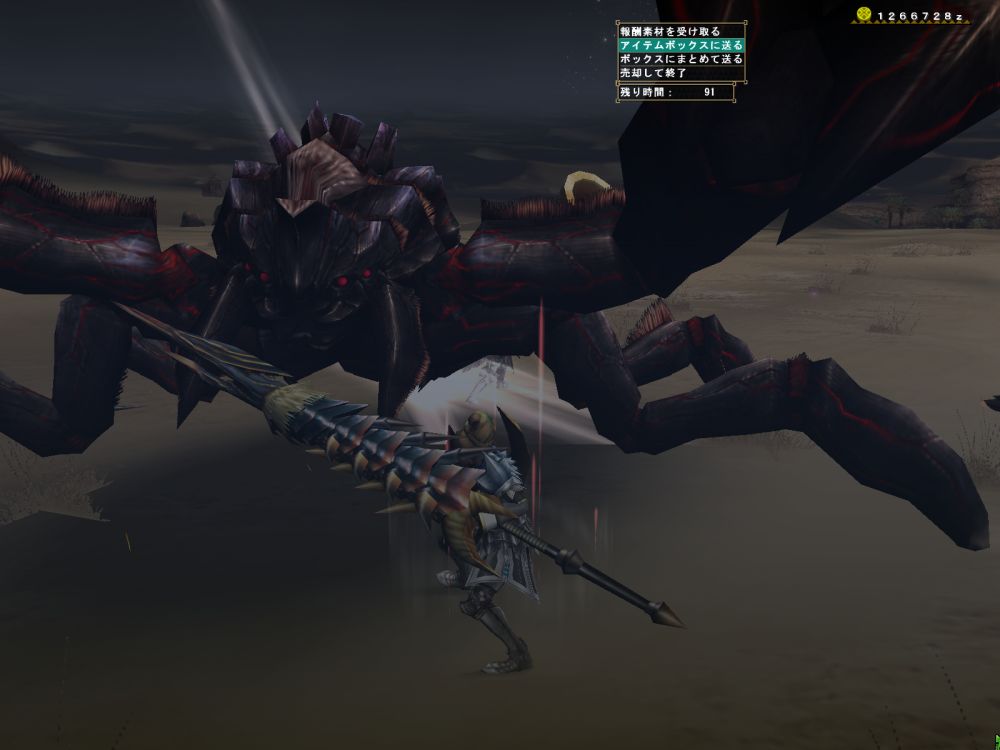 笛・大剣・双剣・ガンという構成で。エスピ自体は2分もあれば終わってしまうので、クエ後の1分間が退屈です長いです。