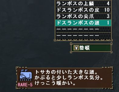 上位ランポス素材なんてそんなに持ってないよ、下位素材よりはあるけど。