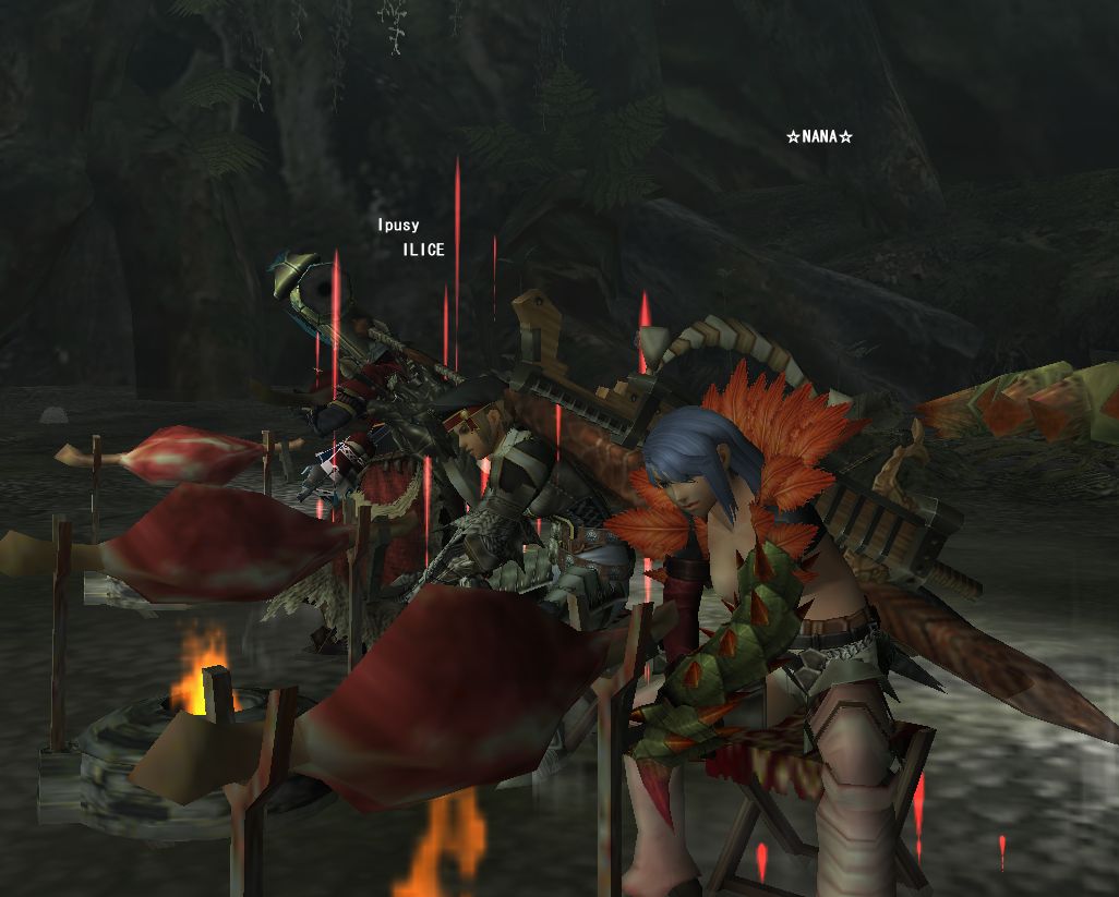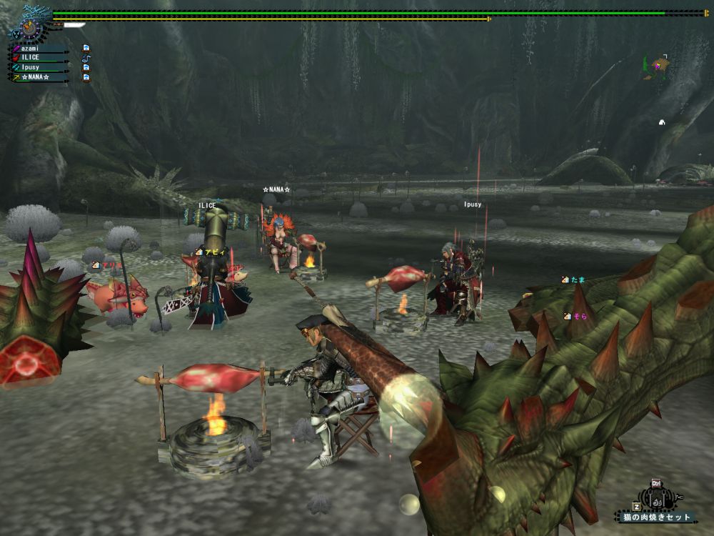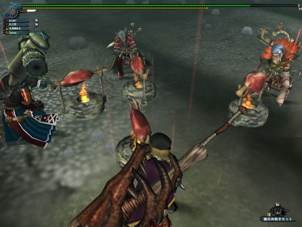 これは☆NANA☆さんの撮ったSSだが、Ipusyの投げたこやし玉やらけむり玉で辺りがかすんでいる。なにも見えん。エスピが駆け回るさなかに肉焼きしてる。