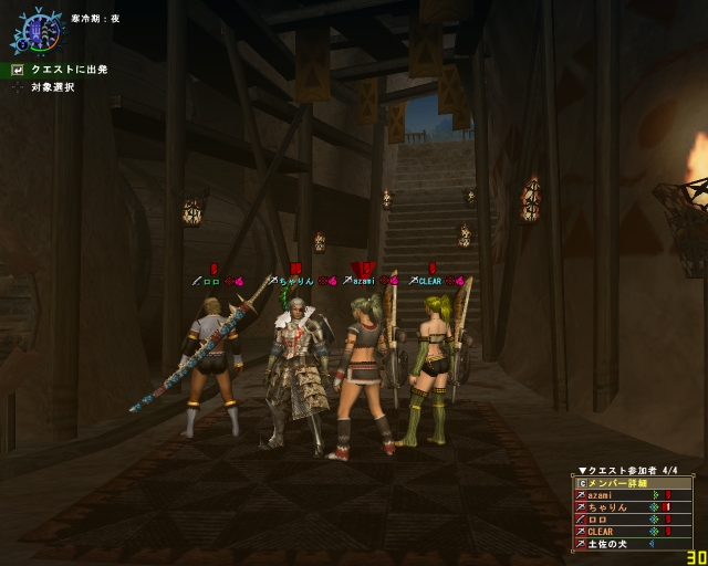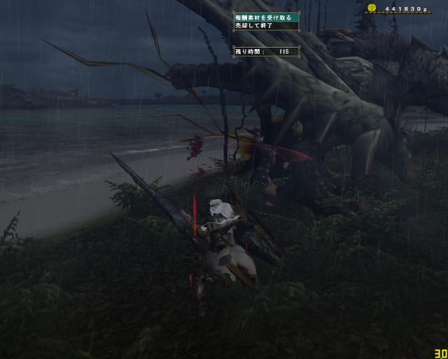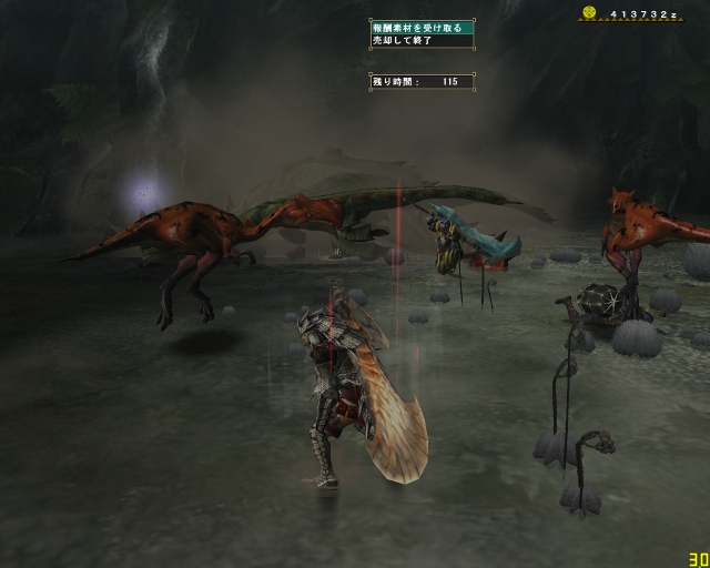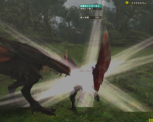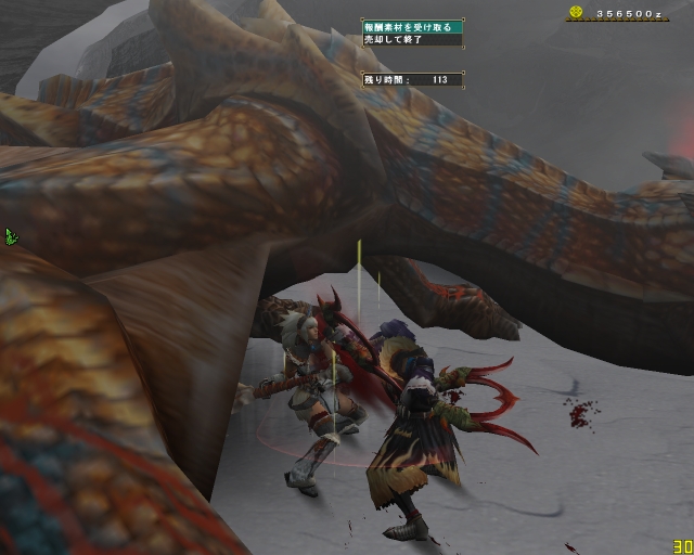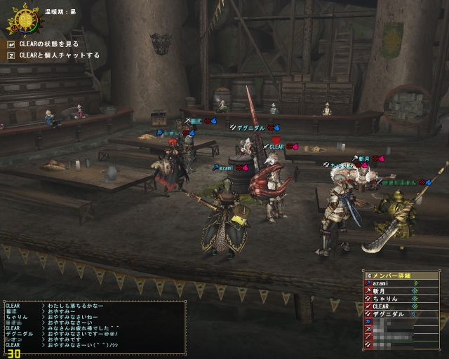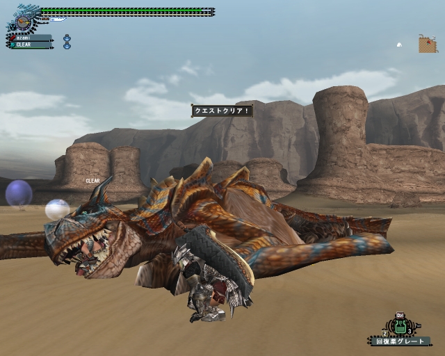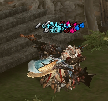 今日のエスピ亜種は四隅ばかり走ってまわって、ハンマーな斬月はとてもやりにくそうだった。ちゃーさん片手、わたしは大剣、CLEARさんは双剣で。