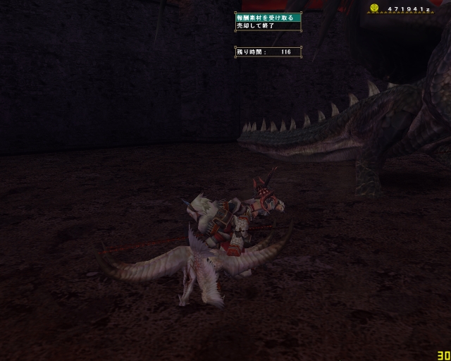 ゲリョスとギザミ。ルルゥちゃんはブリスG(プロミスーブリス)の強化に忙しいらしい。