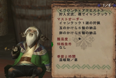 | 7 | 162 | 2 | ギルドエンブレム×1、鳥竜種の毛Ⅲ×4、飛竜種の尾Ⅲ×4、飛竜種の液Ⅲ×4 |