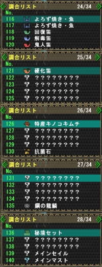 私も確かクシャルF装備の強化に使う「鋼の龍鱗」を「さびた龍鱗」と「生命の粉」で調合して作ったときに、イキナリ調合屋のリストに「鋼の龍鱗」があらわれて、ほーそういう仕組みになっとるのか~と気づきました。HR80くらいの頃ですか (遅い