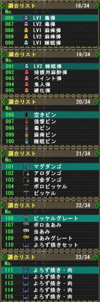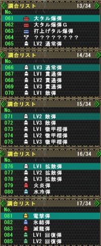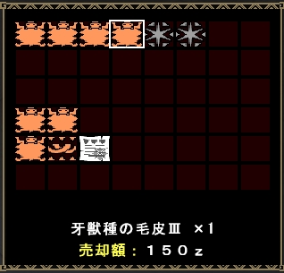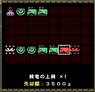 | 6 | 135 | 1 | 飛竜種の牙Ⅰ×10、牙獣種の牙Ⅱ×10、飛竜種の珠Ⅱ×10、飛竜種の棘Ⅲ×2 |