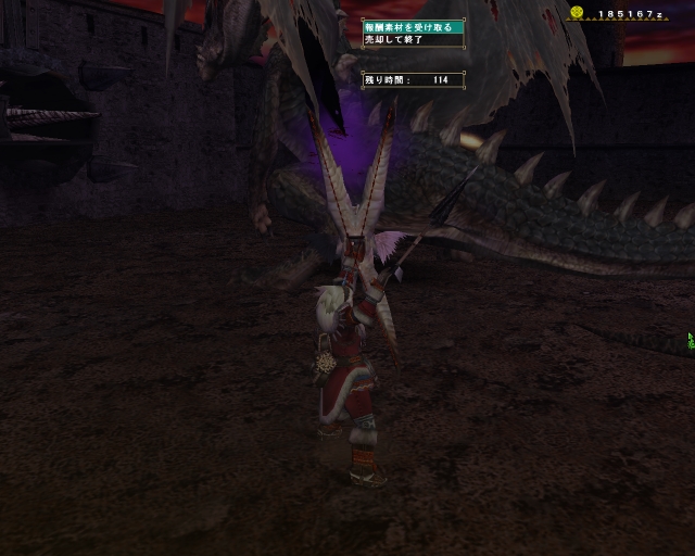 | 5 | 112 | - | 鳥竜種の嘴1×10、飛竜種の肝Ⅰ×10、甲殻種の鋏Ⅱ×10、飛竜種の尾Ⅲ×2 |