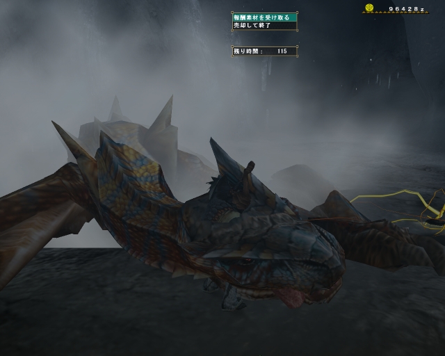リュウノテール+古代豆でおk。みんなで塔の階段を登り、捕獲ではなく討伐したいというはまちさんの希望どおり討伐。ワンクエだけだったけど楽しかったね。今月末には完全に復帰ということなので待っていますね、また狩に行きましょう。