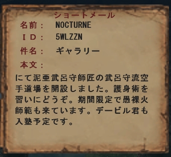 らしい。ちゃーさんと留守ギャラリーに忍び込んで体験入塾w