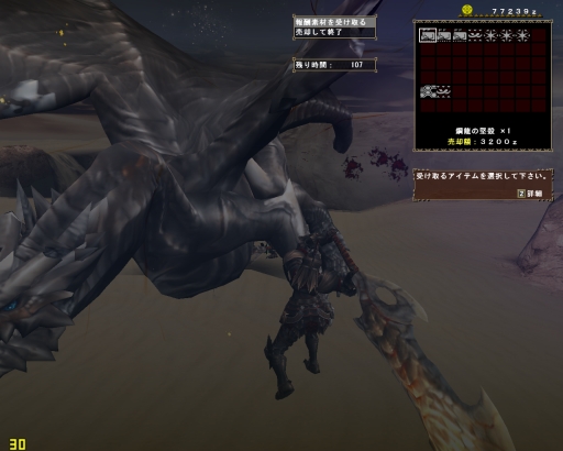 10回行って1個くらいかな、平均すると。本日は1個、祖龍聖剣まであと4個。。。