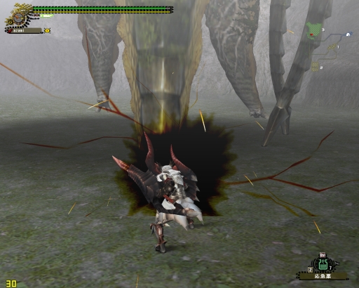エリア8の穴の中の雷の届かない位置から火事場ヘヴィで狙って5分というものだ。あんなところに立てるんだなぁ、というかんじ。間違って中に落ちてしまったらまたぐるっと廻って出直しなんだろうなw わたしにはできそうにない、というかツマラナイ。みんなで斬ったり殴ったりがいいなやっぱり。