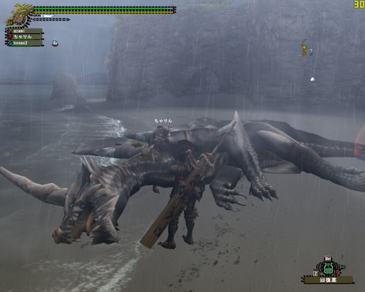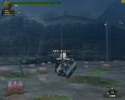 斬月をFに引きずり込んだところにピョンさんが来てくれて、4人でガノトトス変種捕獲。