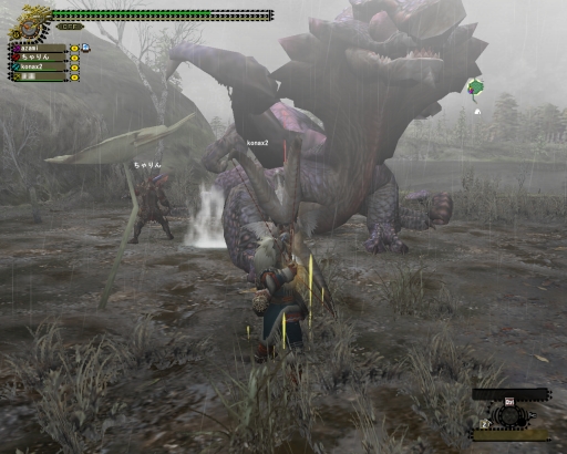 はまちさんが火事場双剣、ガン2人と弓も火事場でエリア1の中ほどで部位破壊が全部終わってしまう。