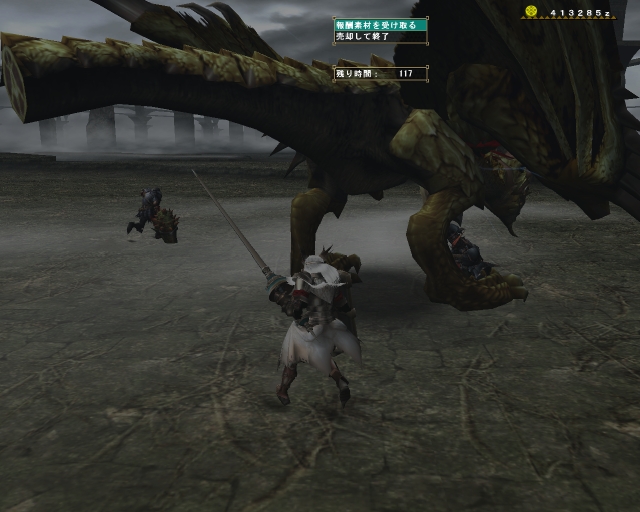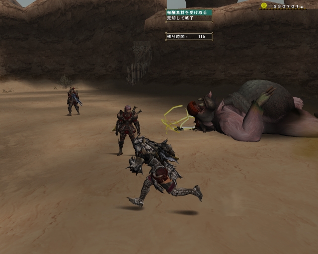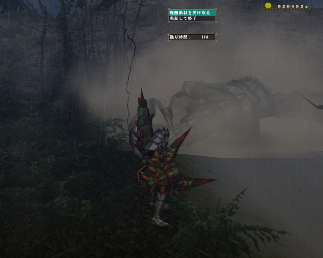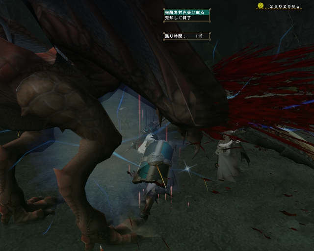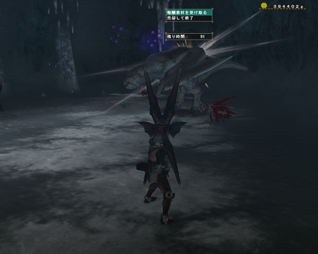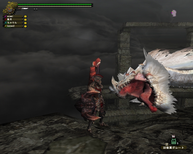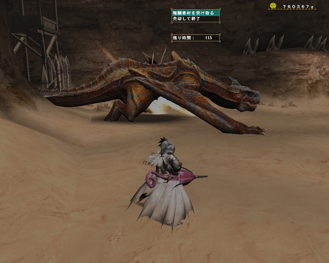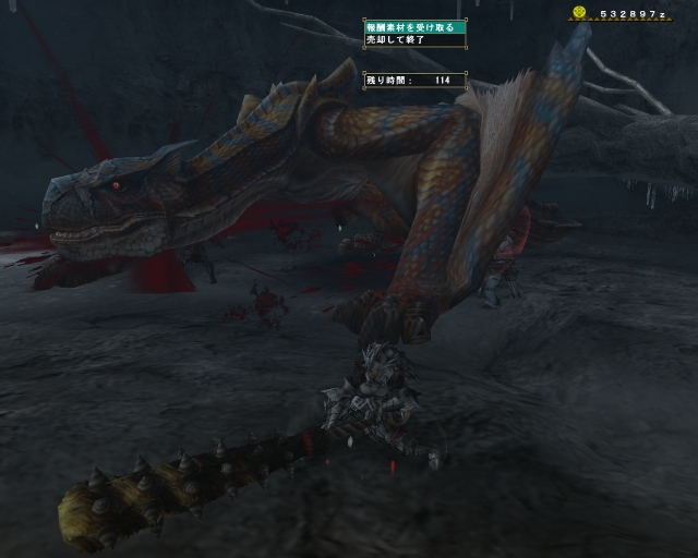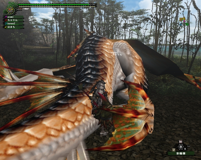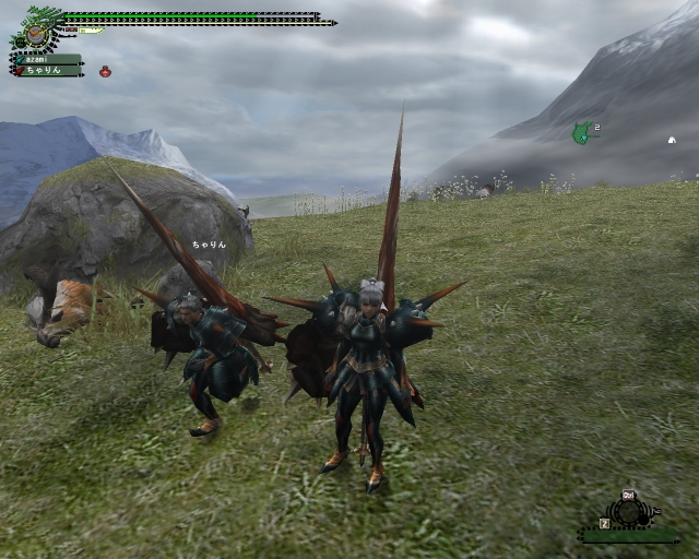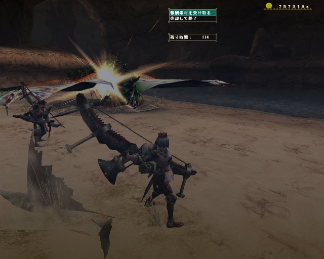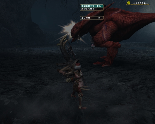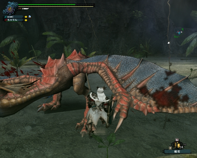 以前ちゃりんさんと魅惑色の翼膜とリに行った時は、雑魚モンスがうざすぎて(とくにアイルーメラルー)大変な目にあったけど、それは二人だったからだと知る。四人で行ったらそんなに感じなかった。