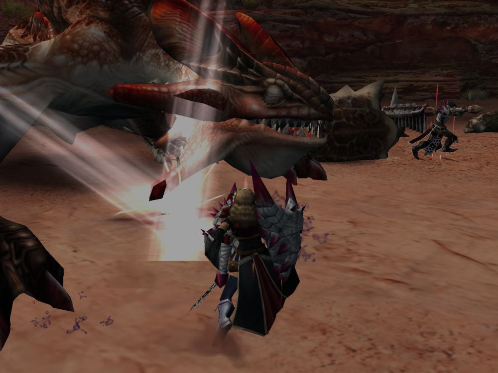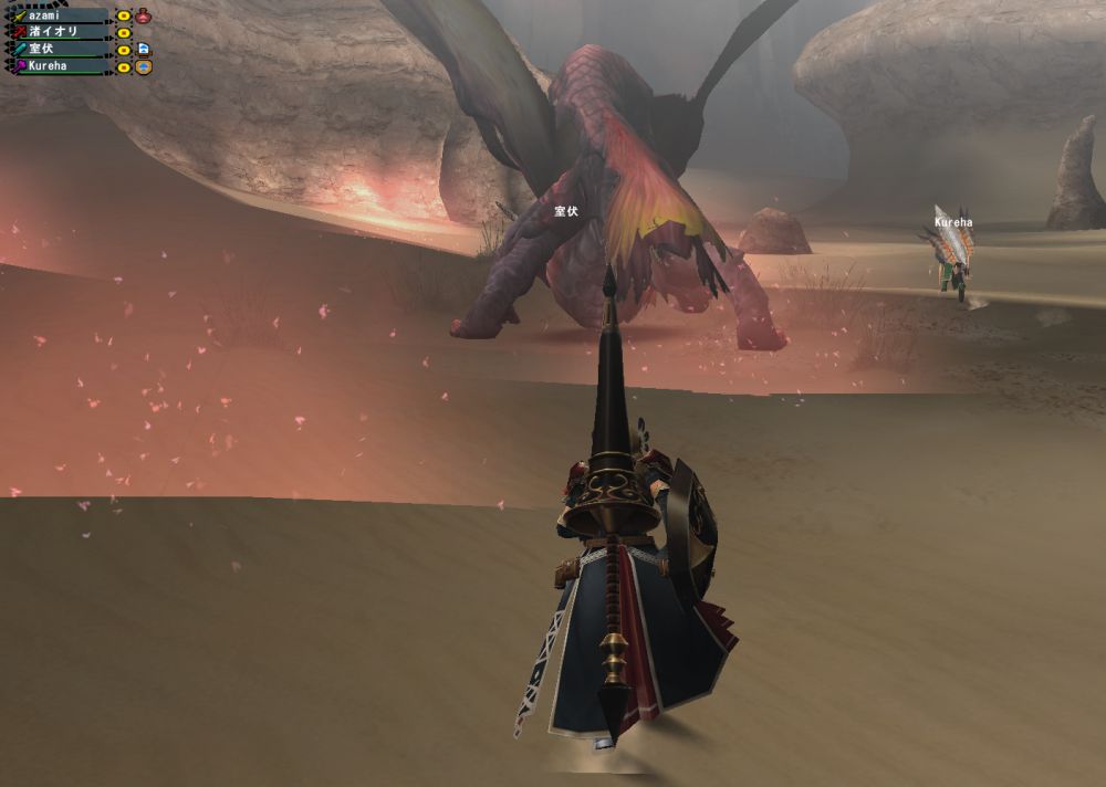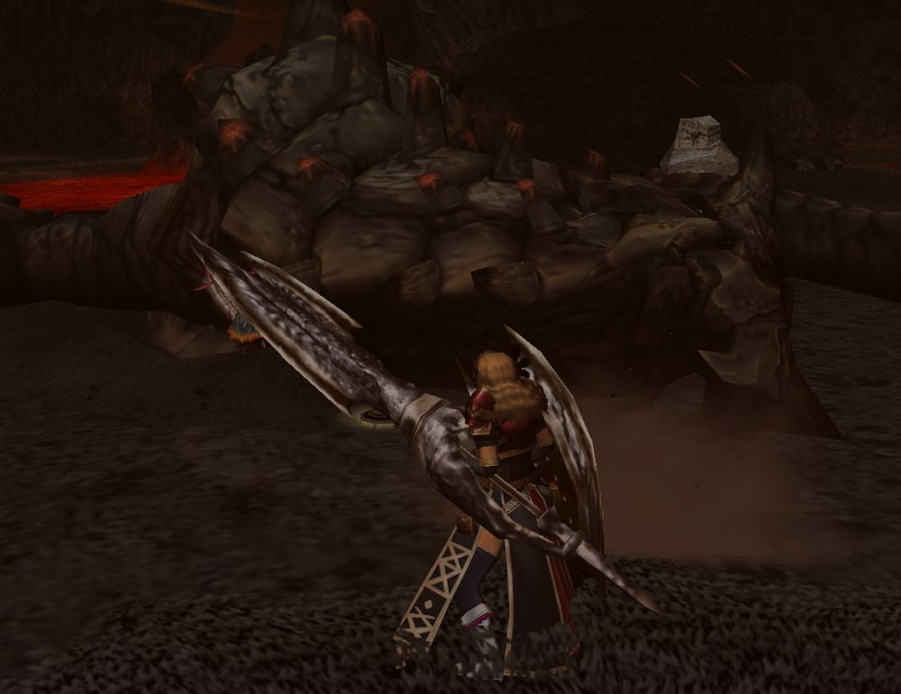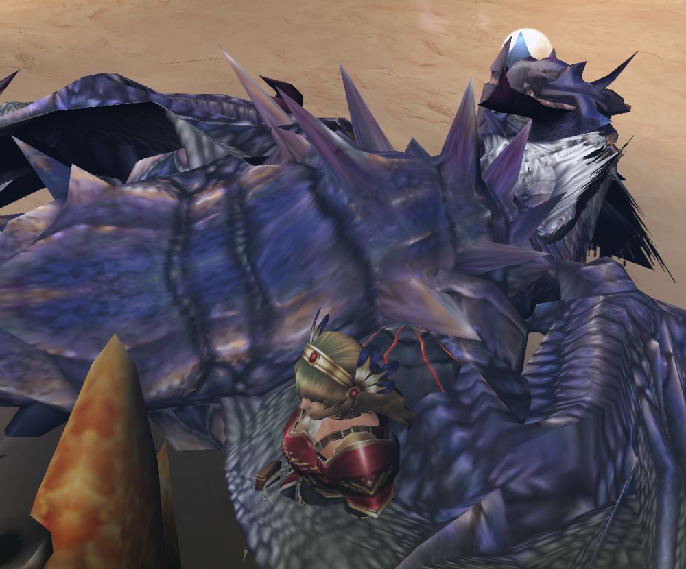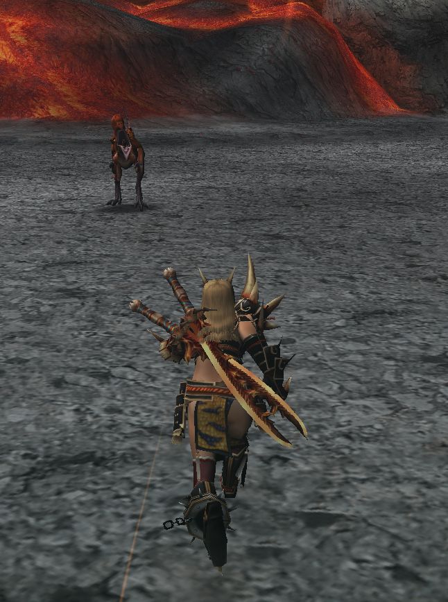 ごうごうたる炎を身にまとっておすまし歩き、火炎放射もめちゃめちゃ長いです。焼かれてあっという間にクエ終了というのが何度もありまして