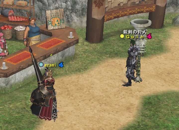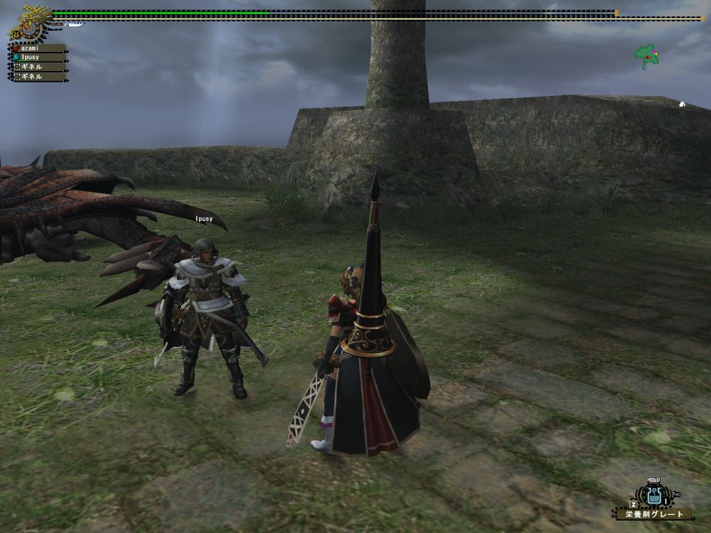 向こうに立っている「謎のハンター」はレジェンドラスタ。