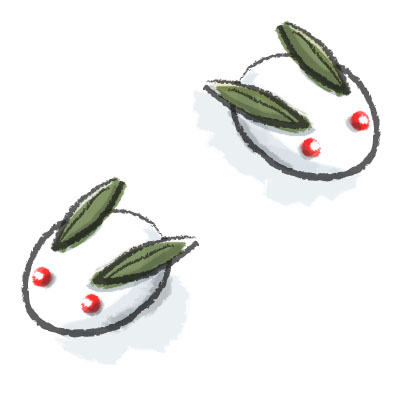 背負っているのが「迎春祭」のイベントで作れる太刀。干支の卯(笑