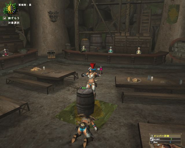ボーンの強化に必要な鉱石とか骨とかファンゴの皮集めに少しつきあって、腕相撲で遊ぶ。